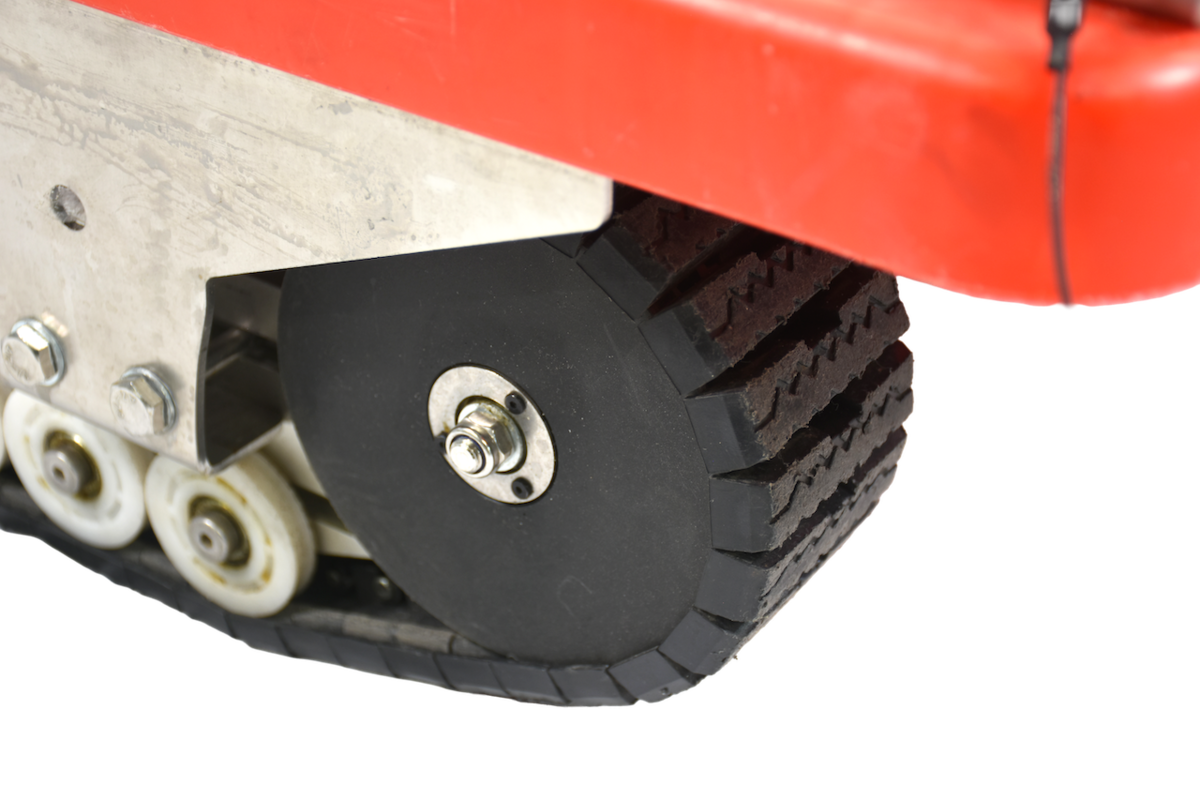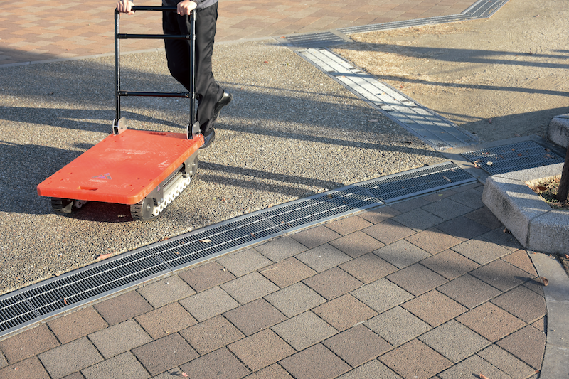 クローラーが障害物を確実に捉えます。縁石や工事現場の段差、さらには最大10cmまでの階段状の障害物もスムーズに攻略。これまで「台車が使えない」と諦めていた運搬経路の制約を大幅に改善します。 |